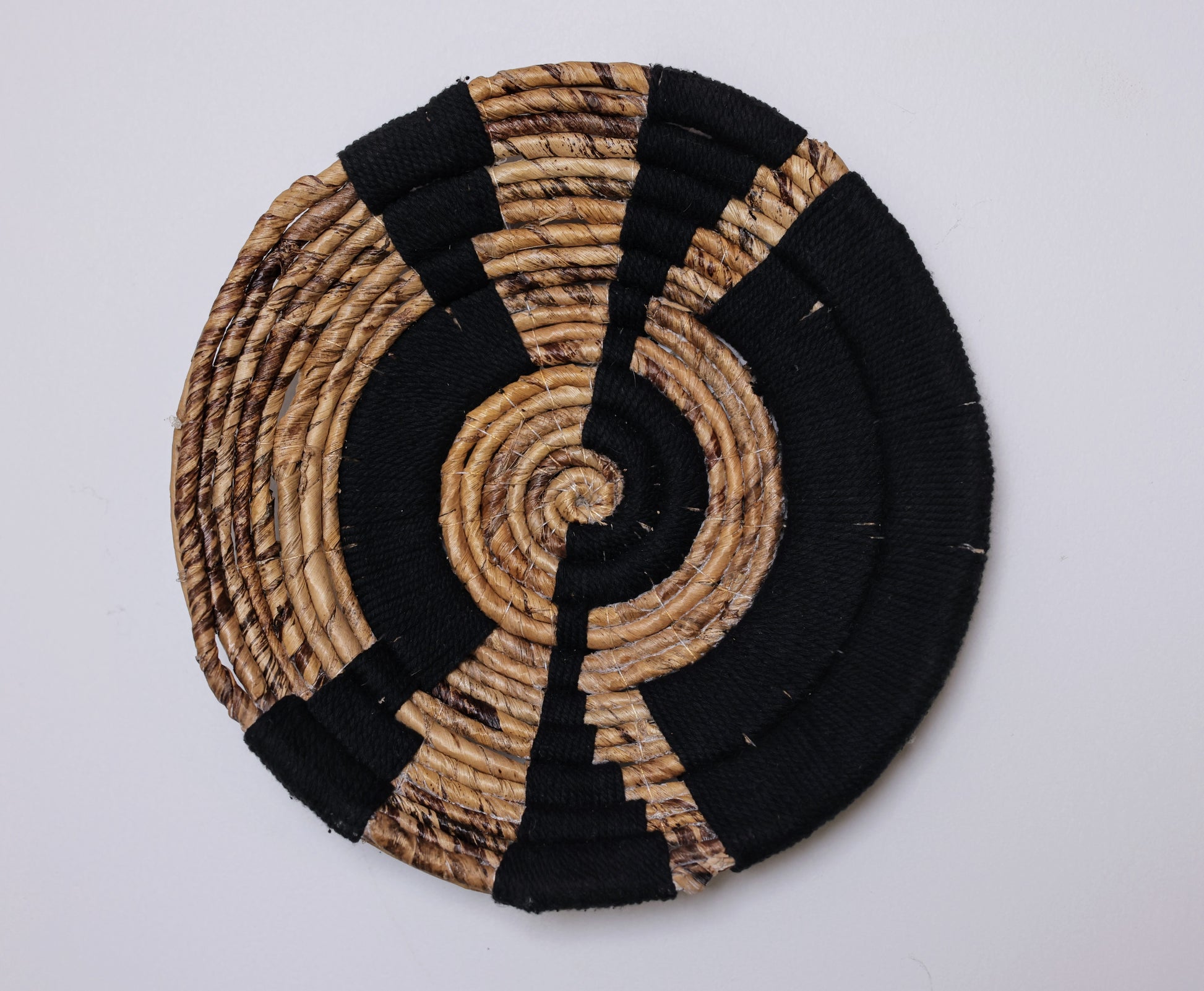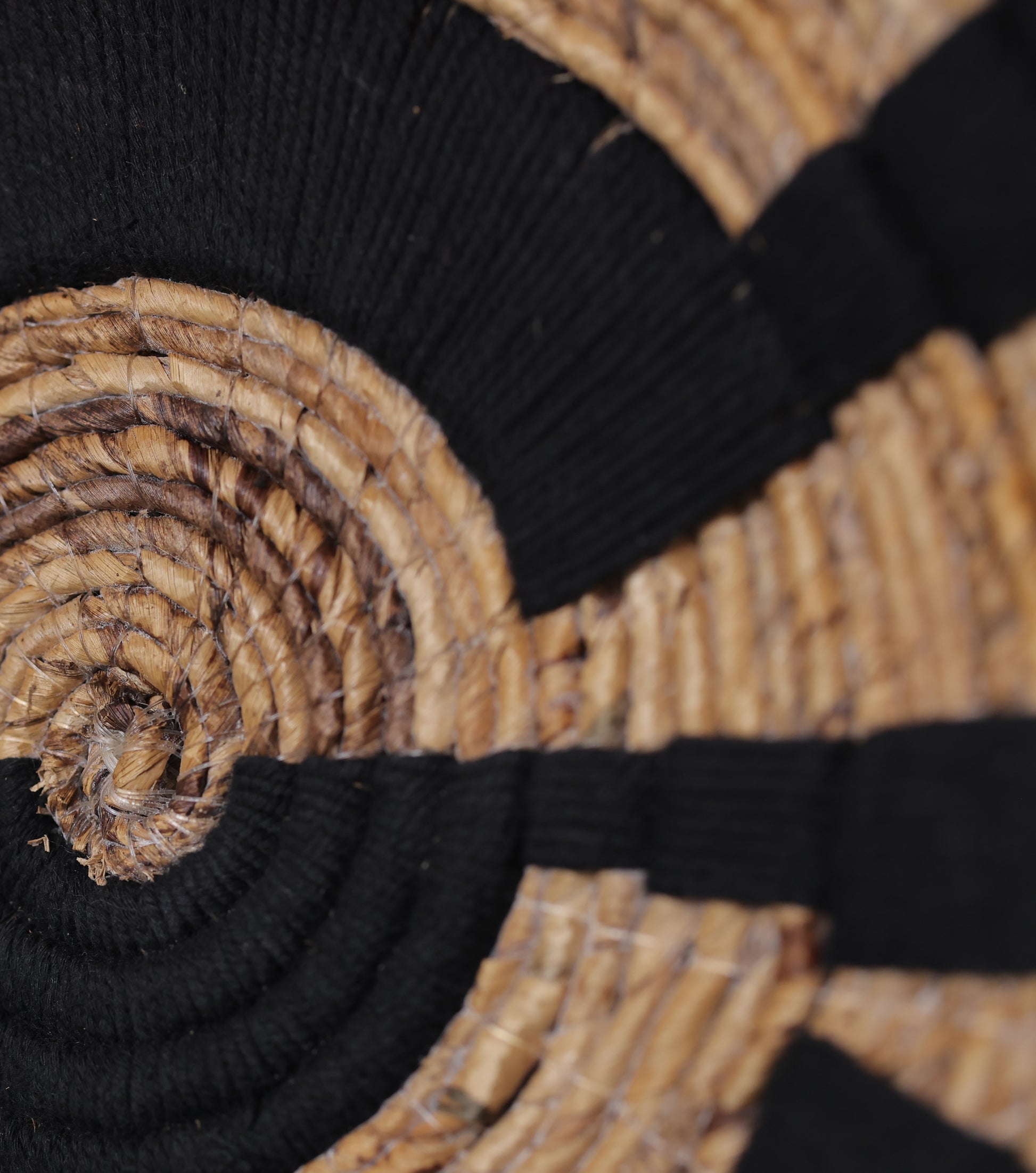Make a bold statement with this set of three handcrafted wall baskets. The striking geometric pattern, created with natural fiber and black cord, brings a touch of modern, global-inspired style to any room. Perfect for a gallery wall or as a standalone duo.
